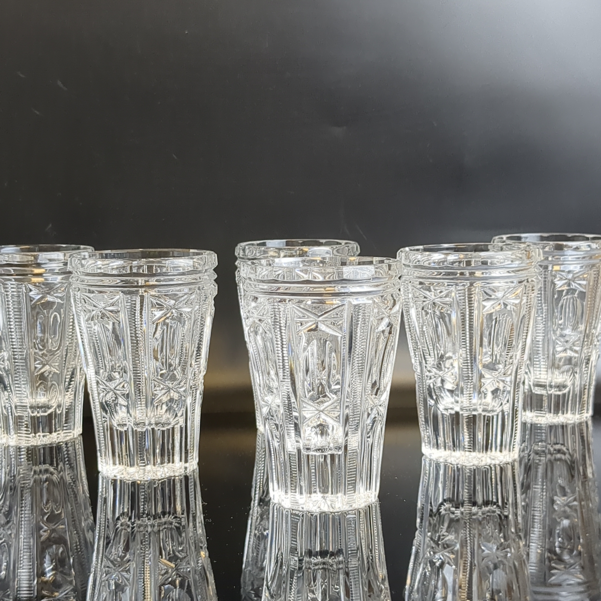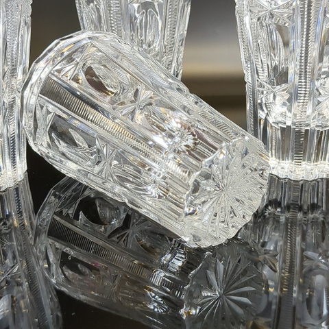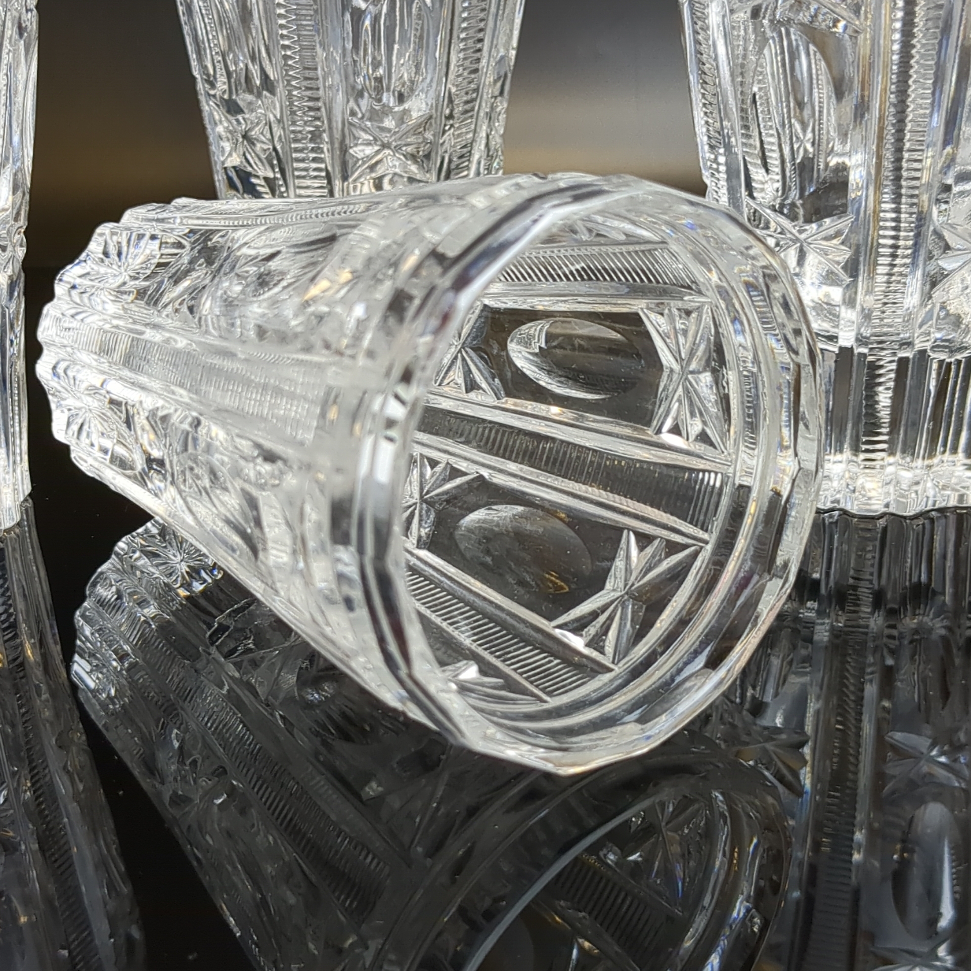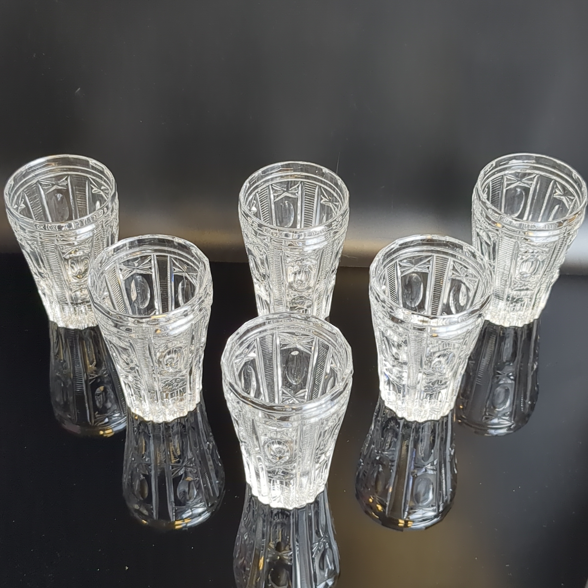 Стаканы, стопки хрустальные набор из 6 штук, алмазная грань, геометрический орнамент, винтаж СССР 1970-1990 гг. Высота - 9.7 см. (объём-? мл). Состояние на фото