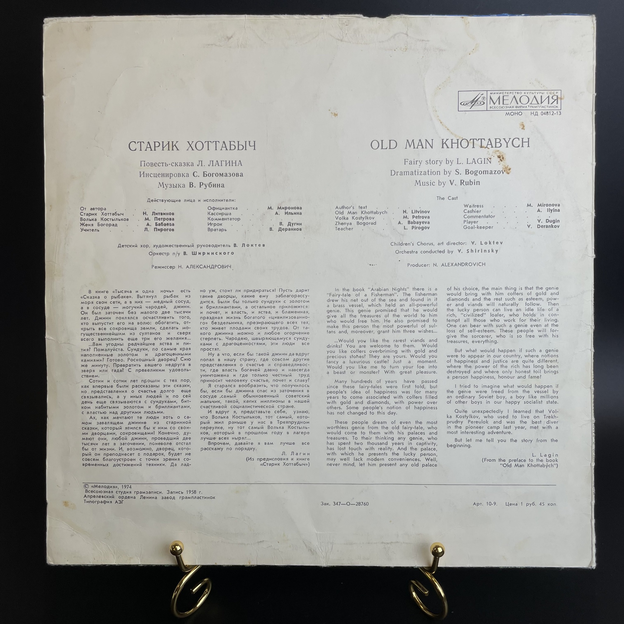 LP Старик Хоттабыч - Л. Лагин. Детская сказка. Виниловая пластинка 12 дюймов. Мелодия СССР 1974 год. Сказки для детей, детские сказки. Конверт EX / Диск EX