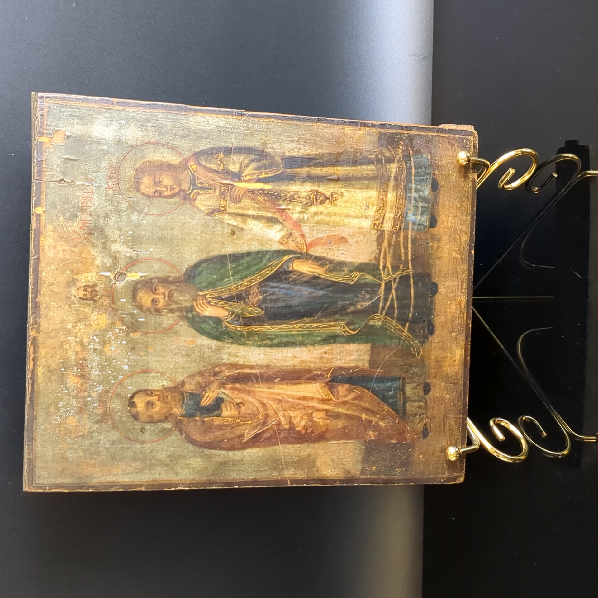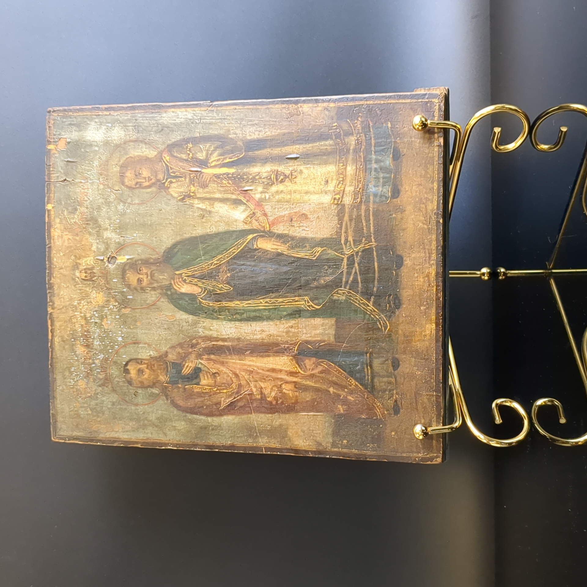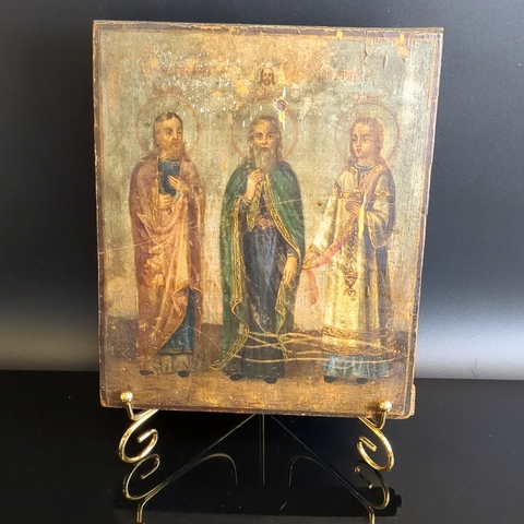 Старинная икона 3 святых - Гурий Самон Авив - покровители домашнго очага - размер 22,5*19 см.