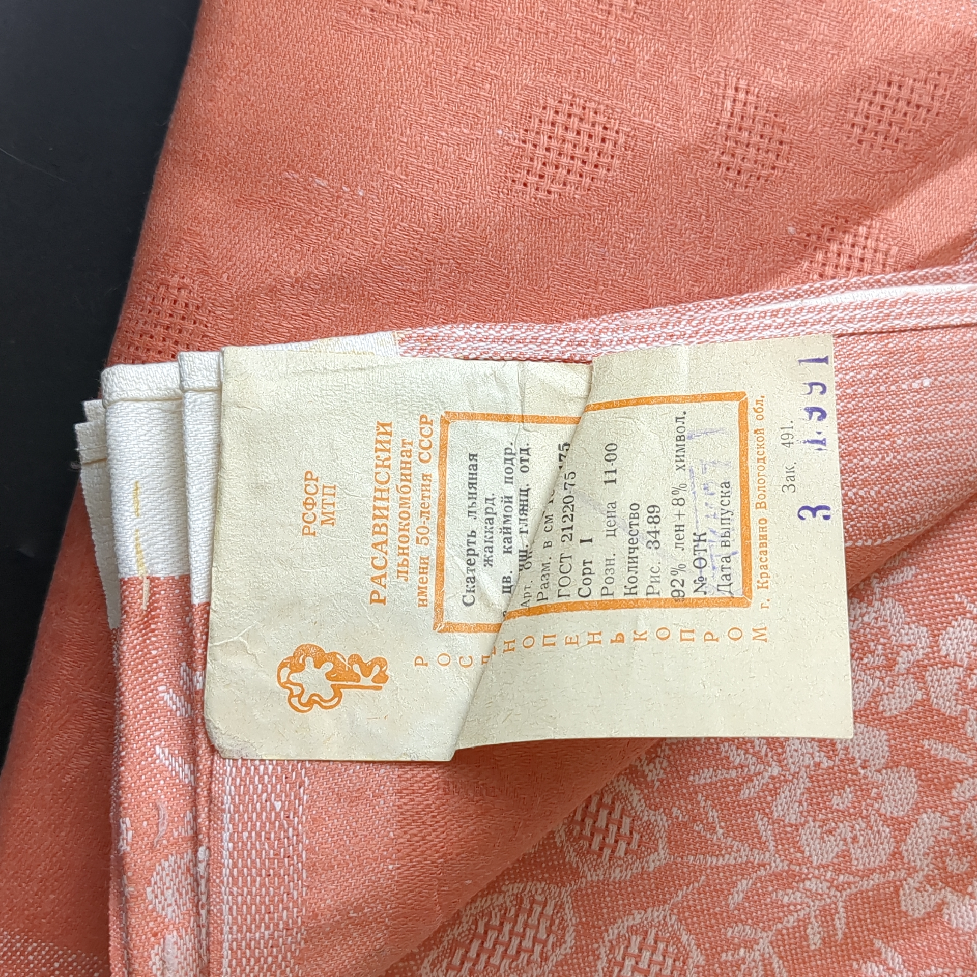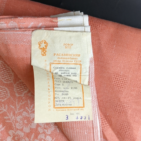 Старинная скатерть льняная жаккард. Волгодская скатерть. Лён. С заводской биркой. 175 х 150 см. Расавинский льнокомбинат имени 50 летия СССР. Винтажная скатерть не пользованная, с хранения.