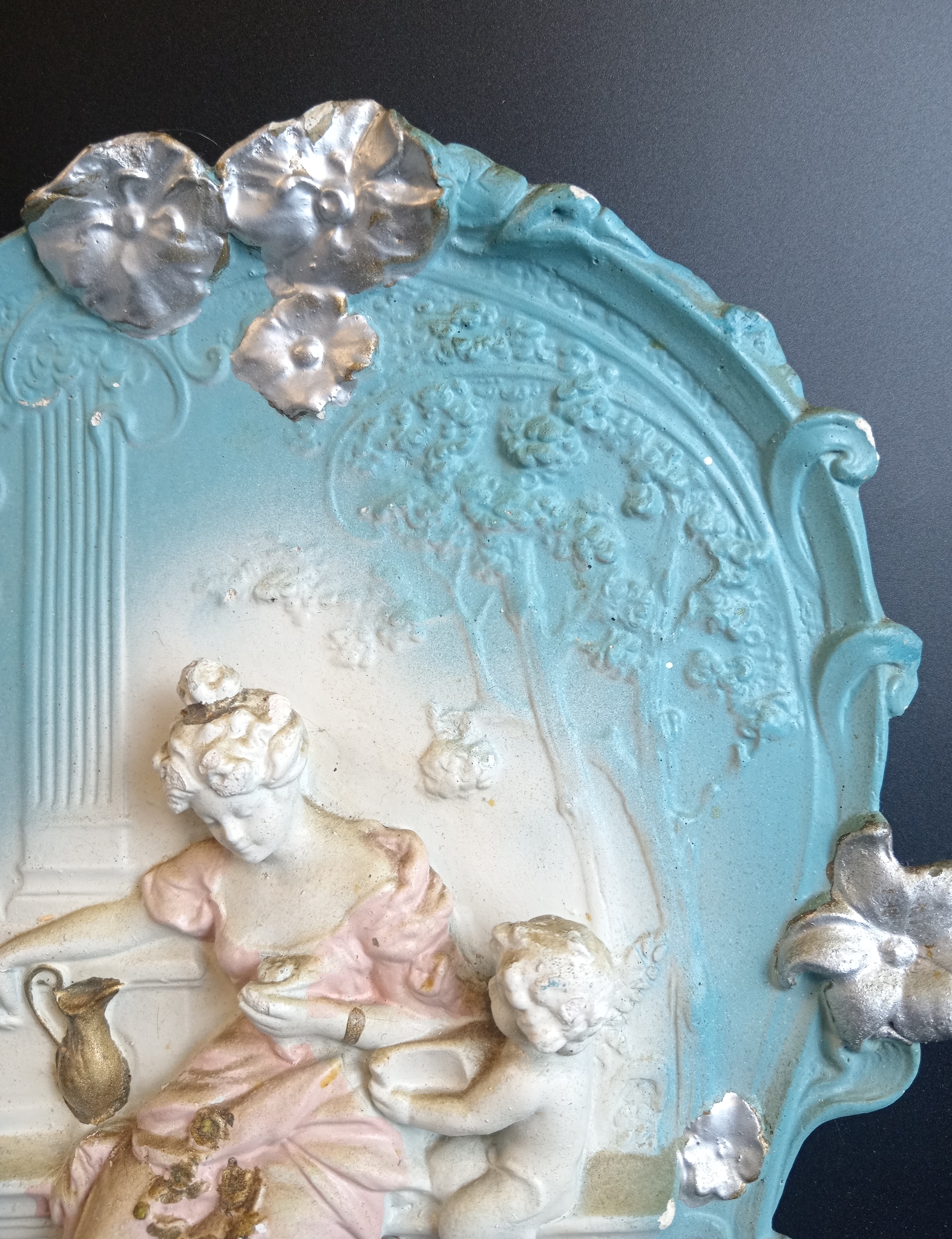 Старинный барельеф, панно с античным сюжетом на стену, Дева и ангел, «Материнсво», гипс, винтаж СССР 1960-1990 гг. Размеры : высота - 33х25 см.