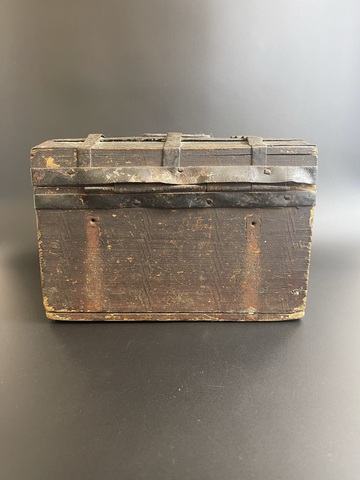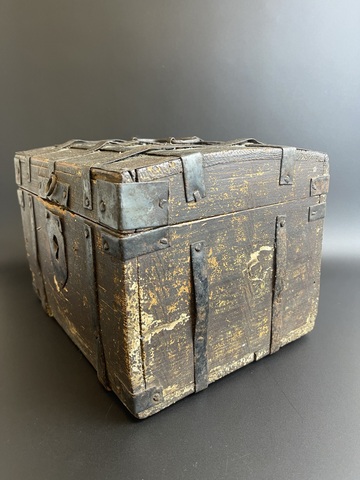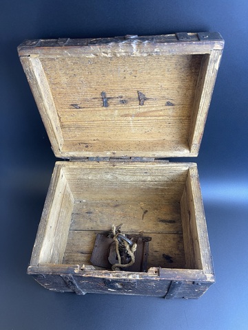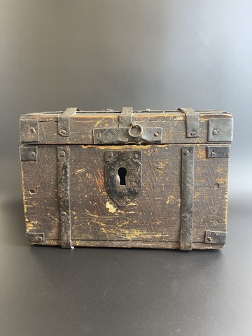 Старинный сундук 19 век . Размеры 23х18х16 см. Замка нету, но лежит внутри. Состояние на фото