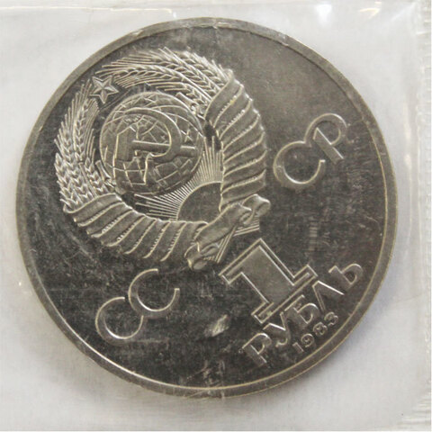 Аверс: Сверху герб СССР с 15 витками ленты, слева от него буквы «СС», справа «СР», ниже обозначение достоинства монеты цифра «1» и ниже слово «РУБЛЬ», внизу у канта год выпуска монеты «1983».