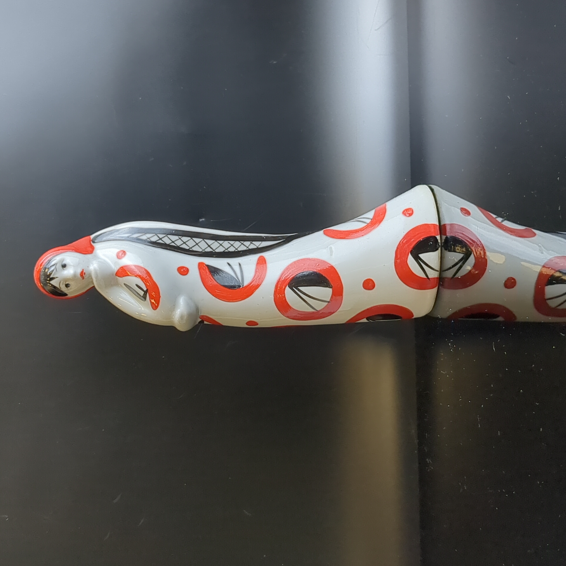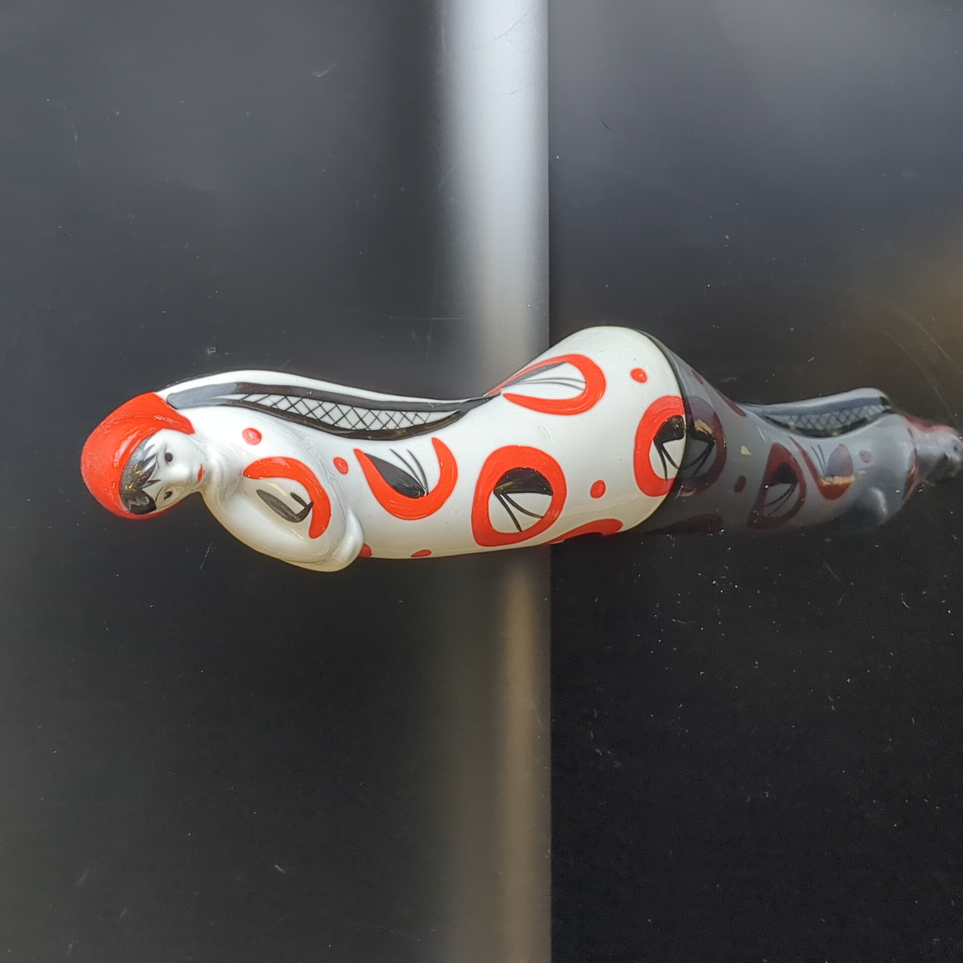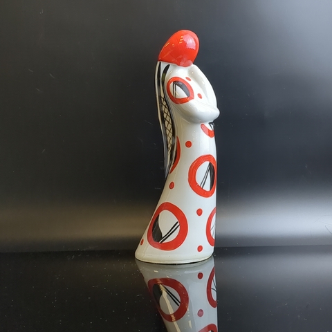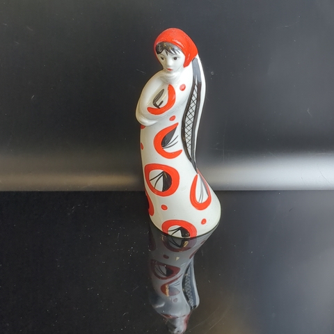 Статуэтка «Девушка с косой» в красном, автор Л.П. Азарова, фарфор, роспись, Турыгинский фарфоровый завод артели «Художественная керамика» (Гжель), СССР, 1960-1970 гг.