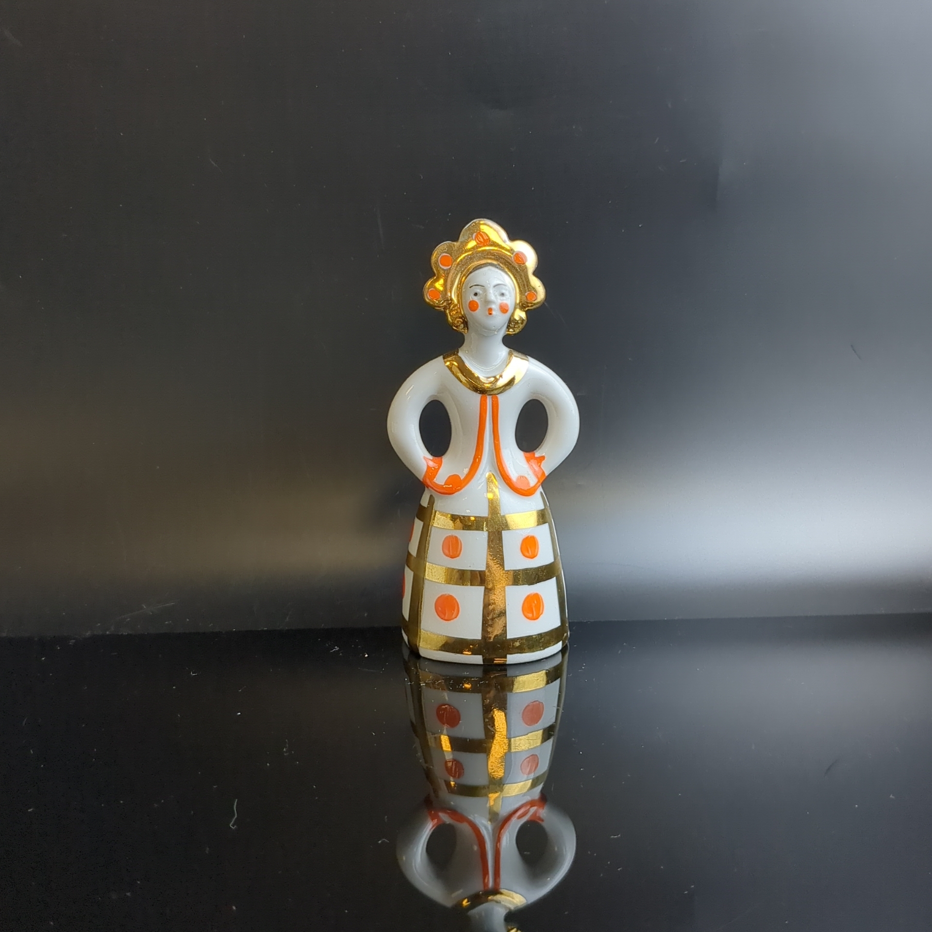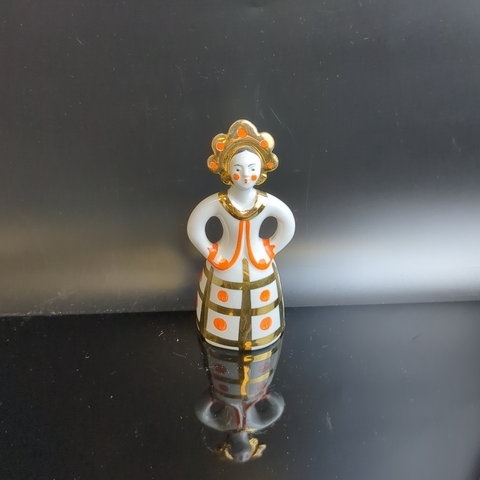 Статуэтка "Девушка в кокошнике", фарфор, роспись, золочение, Дулевский фарфоровый завод ("Дулево"), СССР, 1964-1968 гг.