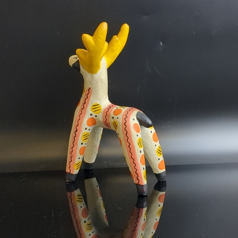 Статуэтка Дымковская игрушка Олень с золотыми рогами, 15,5 см, Киров/Вятка/Хлынов, глина, ручная лепка и роспись, СССР 1970-1990 гг