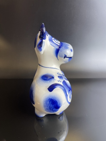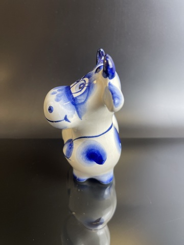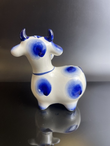 Статуэтка гжель Корова с колокольчиком роспись, ручная работа 10.5 см, фарфор. Присутствуют следы использования- небольшие трещинки на глазури, состояние на фото