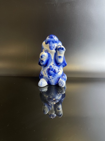 Статуэтка гжель Собачка, собака, ручная работа, высота - 11 см, роспись на фарфоре. Состояние на фото