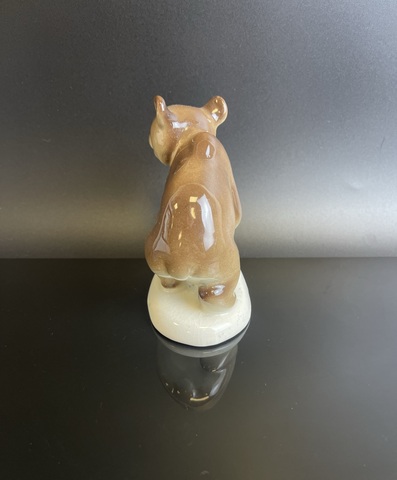 Статуэтка "Медвежонок присевший", скульптор Б.Я. Воробьев, фарфор, аэрография, роспись, ЛФЗ, СССР, 1960-1969 гг.