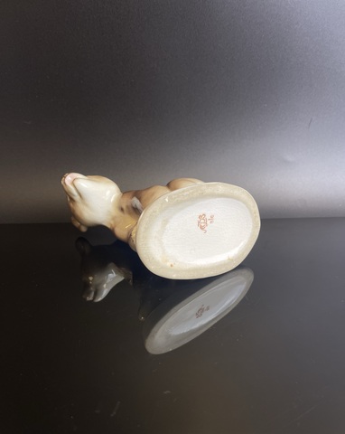 Фарфоровая статуэтка "Медвежонок присевший", скульптор Б.Я. Воробьев, фарфор, аэрография, роспись, Ленинградский фарфоровый завод (ЛФЗ), СССР, 1960-1969 гг.