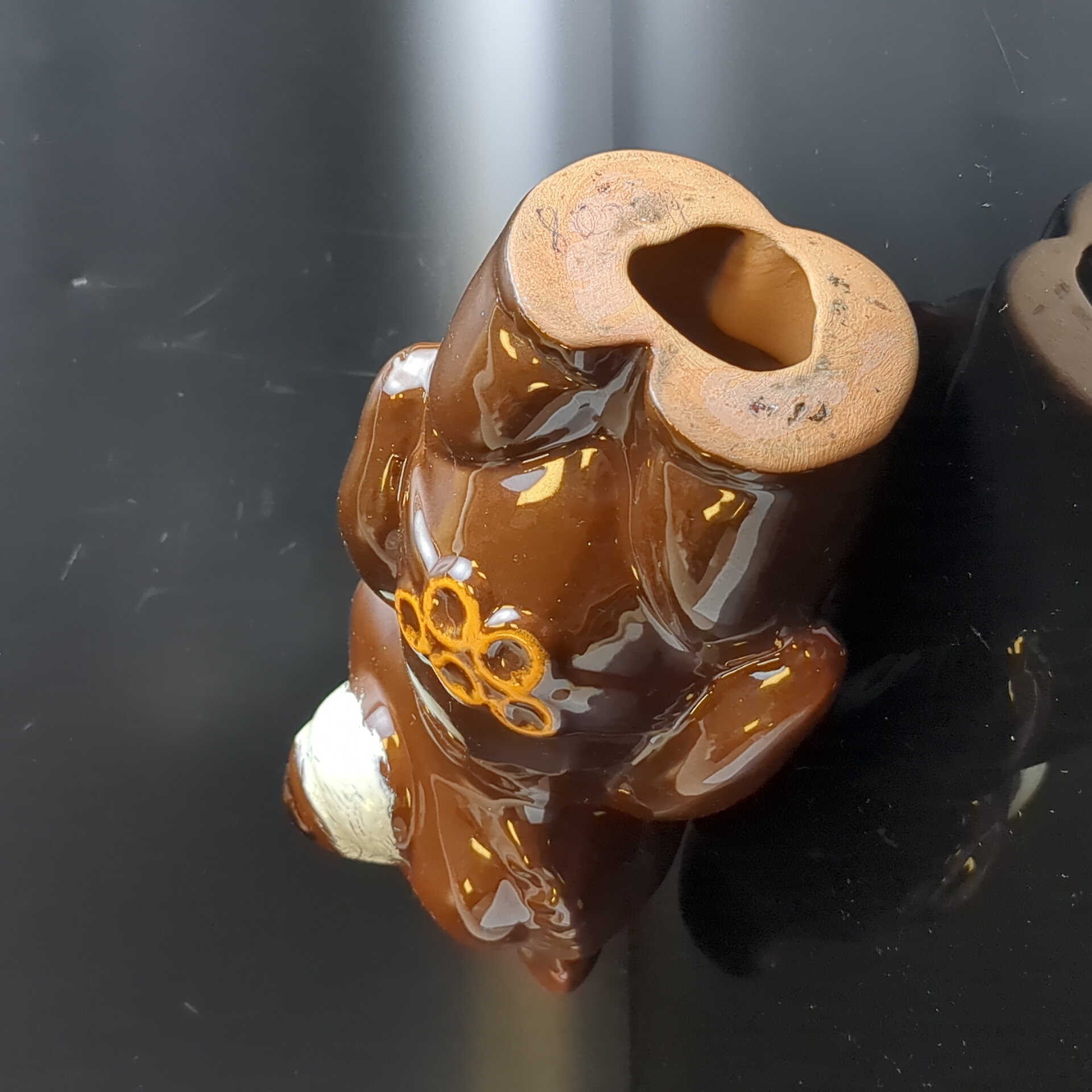 Статуэтка Олимпийский мишка, фаянс, глазурь, СССР, 1980 г. Высота 22 см