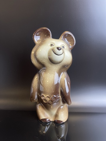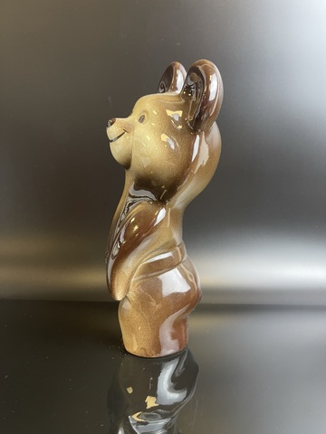 Статуэтка Олимпийский мишка с поясом 20 см . Редкий СССР. Шахтинский фаянсовый завод