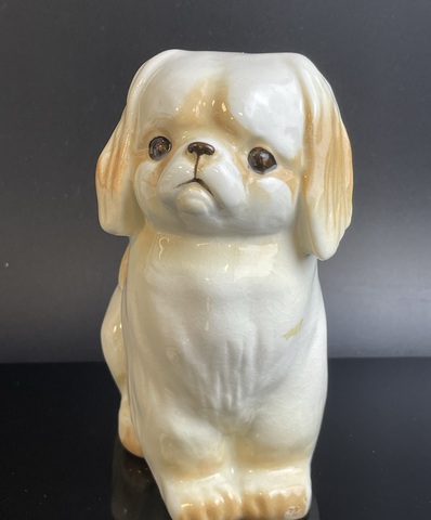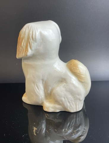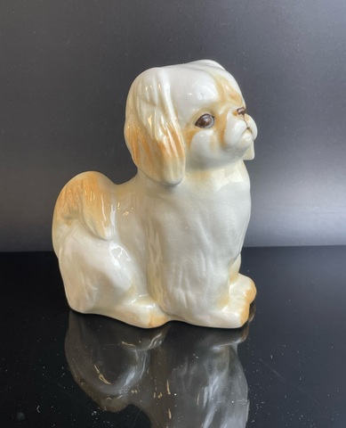 Статуэтка "Пекинес" (бело-рыжий), фарфор, аэрография, Ленинградский фарфоровый завод (ЛФЗ), СССР, 1970-1990 гг. 13 см