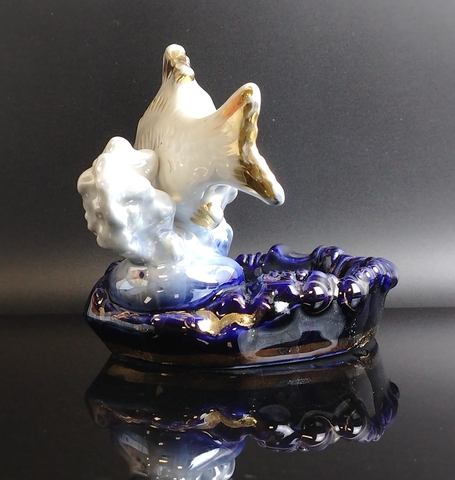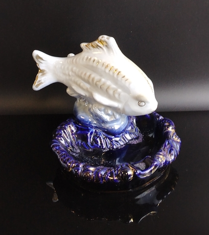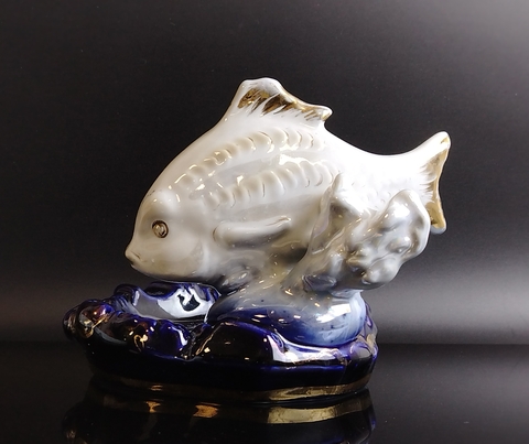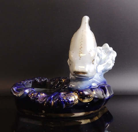 Статуэтка (пепельница) фарфоровая "Карп", Дулево ФЗ, скульптор П.М. Кожин, роспись, золочение, винтаж СССР 1960-е гг.