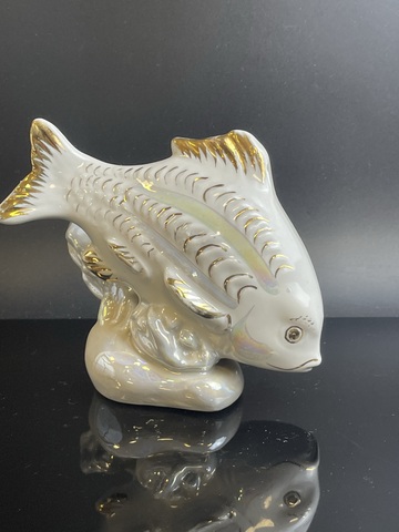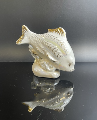 Статуэтка Рыба - карп, скульптор П.М. Кожин, фарфор, роспись, золочение, Дулевский фарфоровый завод Дулёво, СССР, 1956 г. Целая