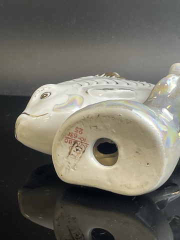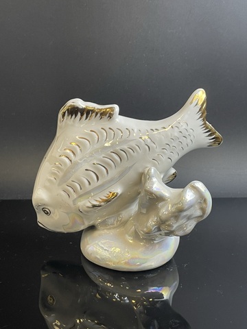 Статуэтка "Рыба-карп", скульптор П.М. Кожин, фарфор, роспись, золочение, Дулевский фарфоровый завод (Дулёво), СССР, 1956 г.
