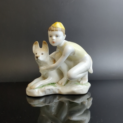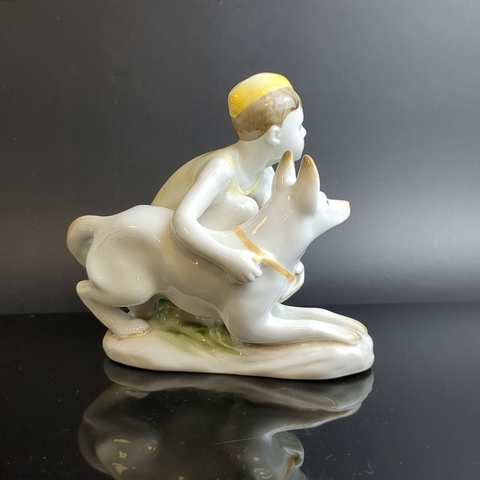 Статуэтка "Юный пограничник с собакой", скульптор Г.С. Столбова, фарфор, роспись, Ленинградский фарфоровый завод (ЛФЗ), СССР, 1970-1990 гг.