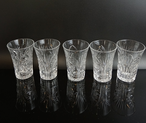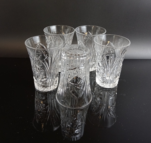 Стопки хрустальные алмазная грань, геометрический узор. 75 мл, высота -8 см, винтаж СССР 1970-1990 гг. Диаметр верха - 5.5 см. Присутствуют следы использования - состояние на фото