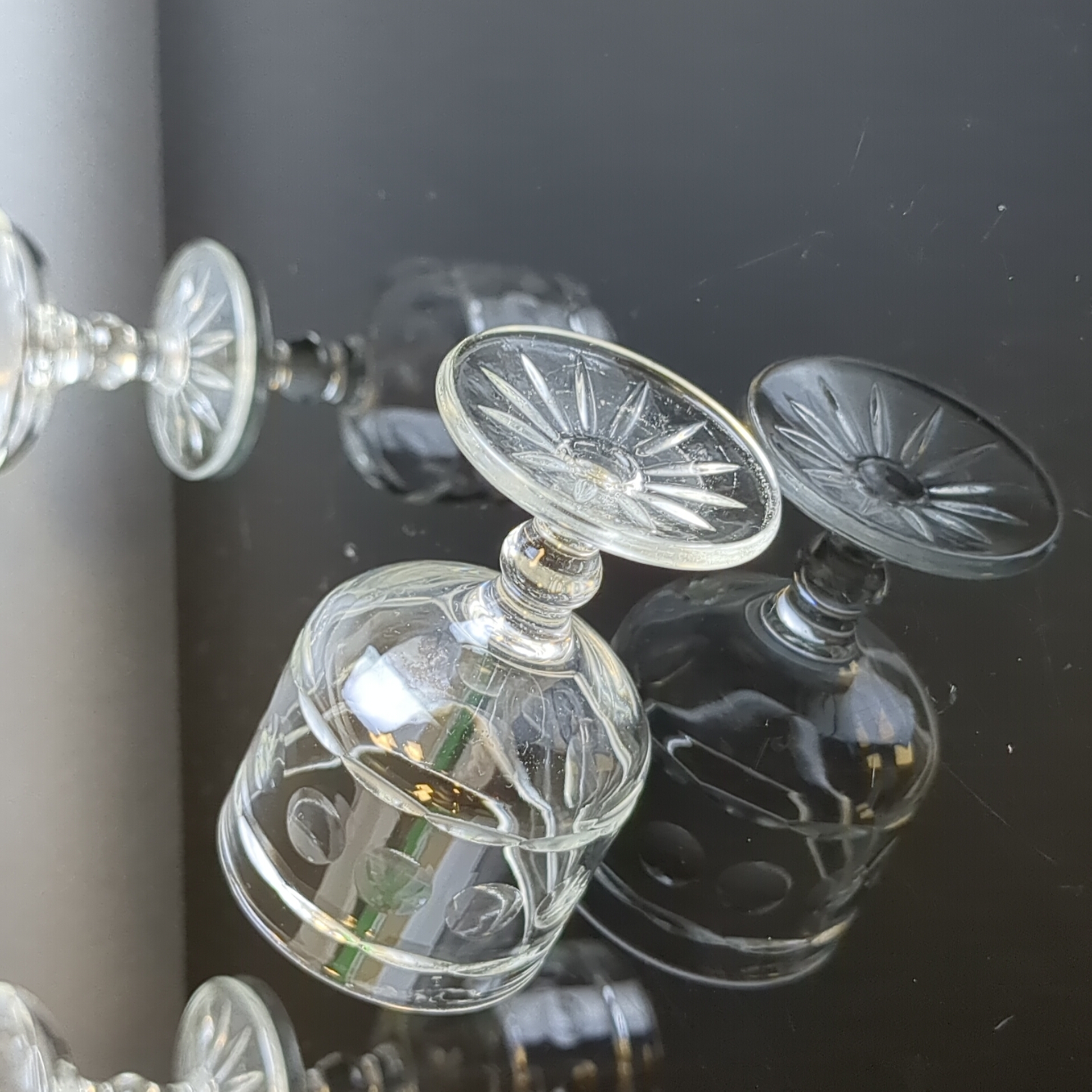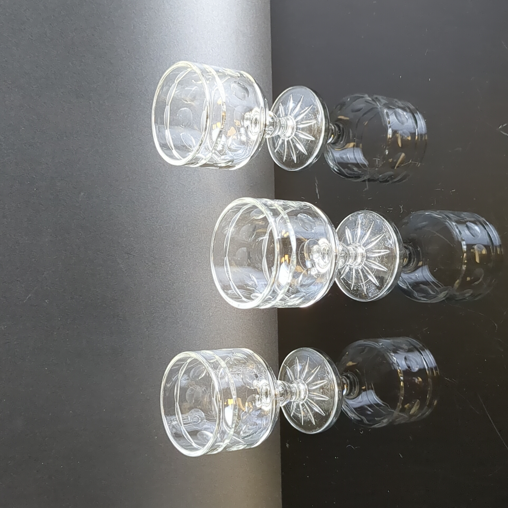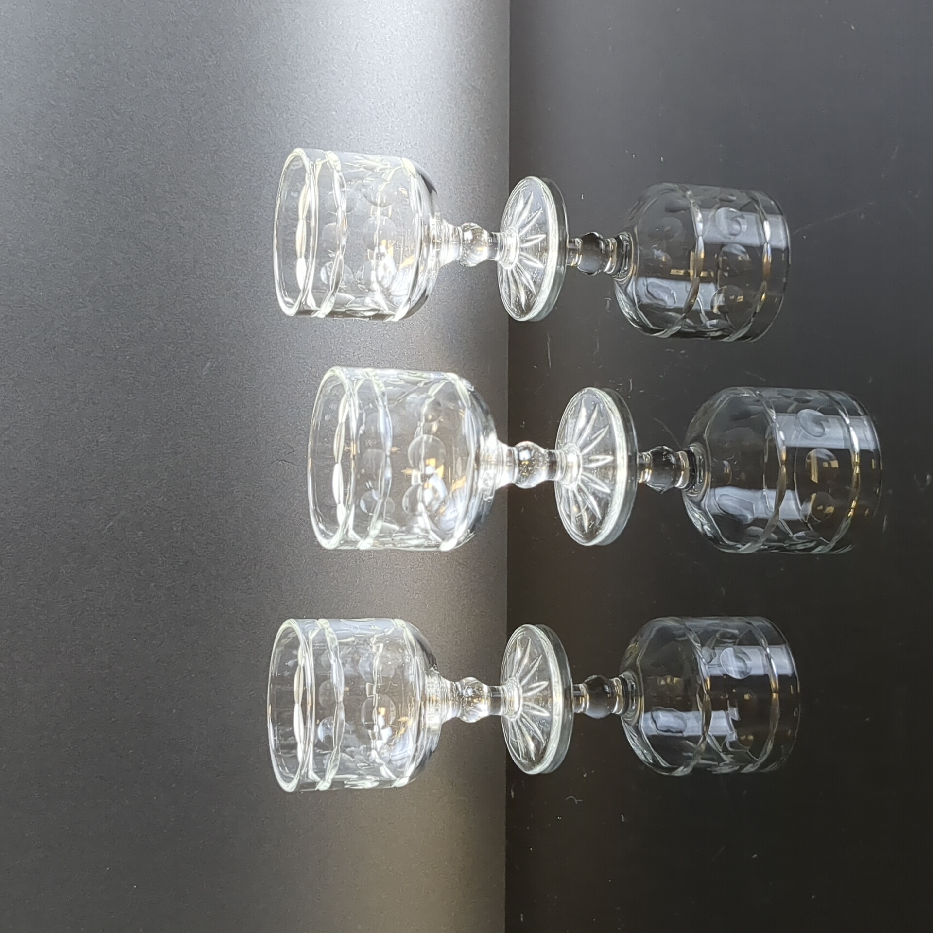 Набор из 3х штук хрустальных ликерных рюмок - винтажная роскошь в вашем доме. Высота - 6.3 см. Состояние на фото.
