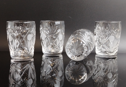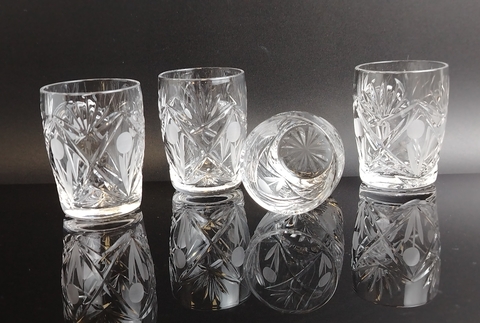 Стопки хрустальные набор из 4 штук - винтажная роскошь в вашем доме. Высота - 6 см. Состояние на фото.