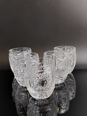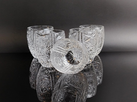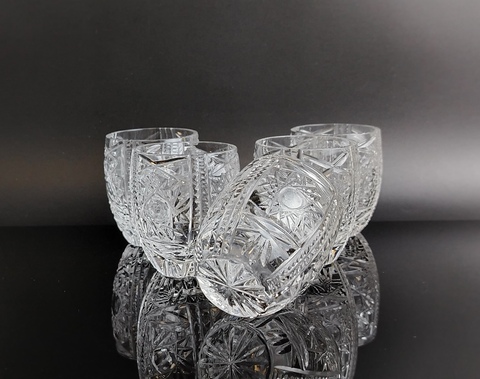 Стопки хрустальные набор из 5 штук, алмазная грань, геометрический орнамент, высота- 7 см, винтаж СССР 1970-1990 гг. Состояние на фото- незначительные следы использования
