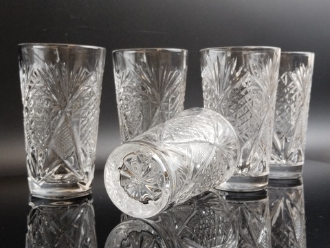 Хрустальные стопки набор из 5 штук - винтажная роскошь в вашем доме. Высота - 8.5 см. Состояние на фото.