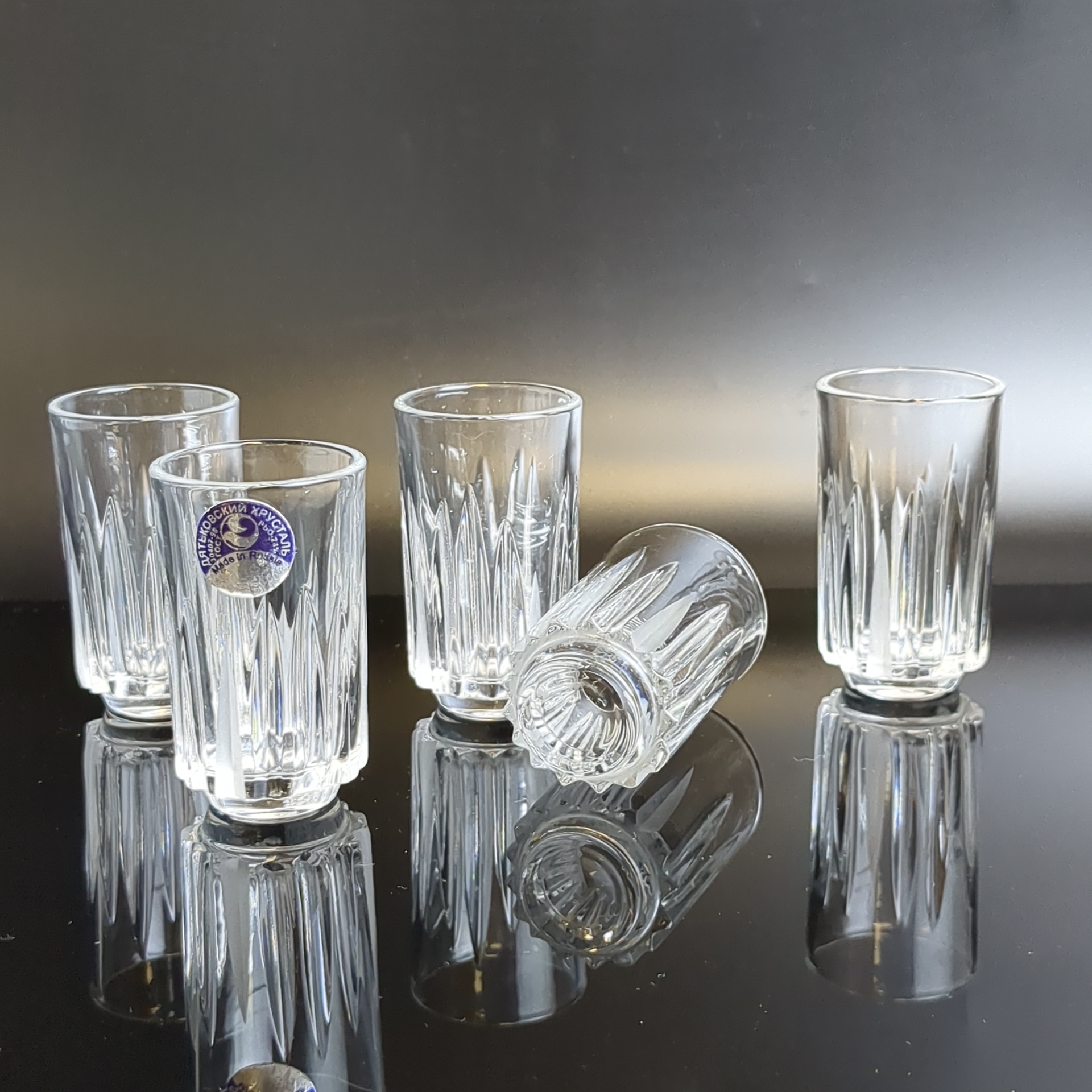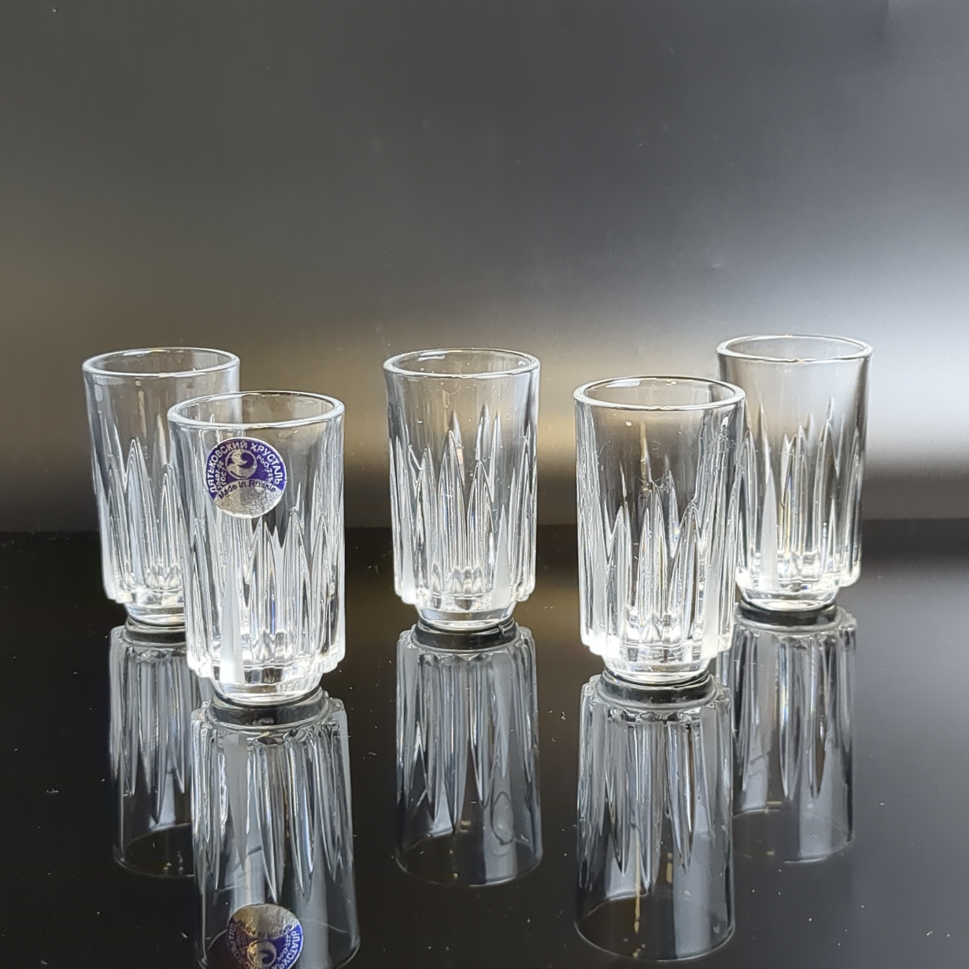 Набор из 5 хрустальных стопок — это восхитительное сочетание элегантности и винтажного очарования, которое перенесет вас в атмосферу СССР 1970-1990 годов.