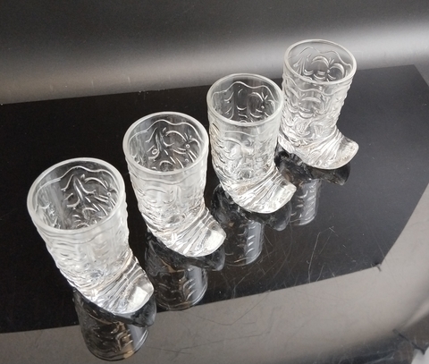 Откройте для себя очарование ушедшей эпохи с набором советских стеклянных стопок в виде сапожков на 4 персоны — сокровищем винтажного стиля! Высота - 7.5 см. Состояние на фото.