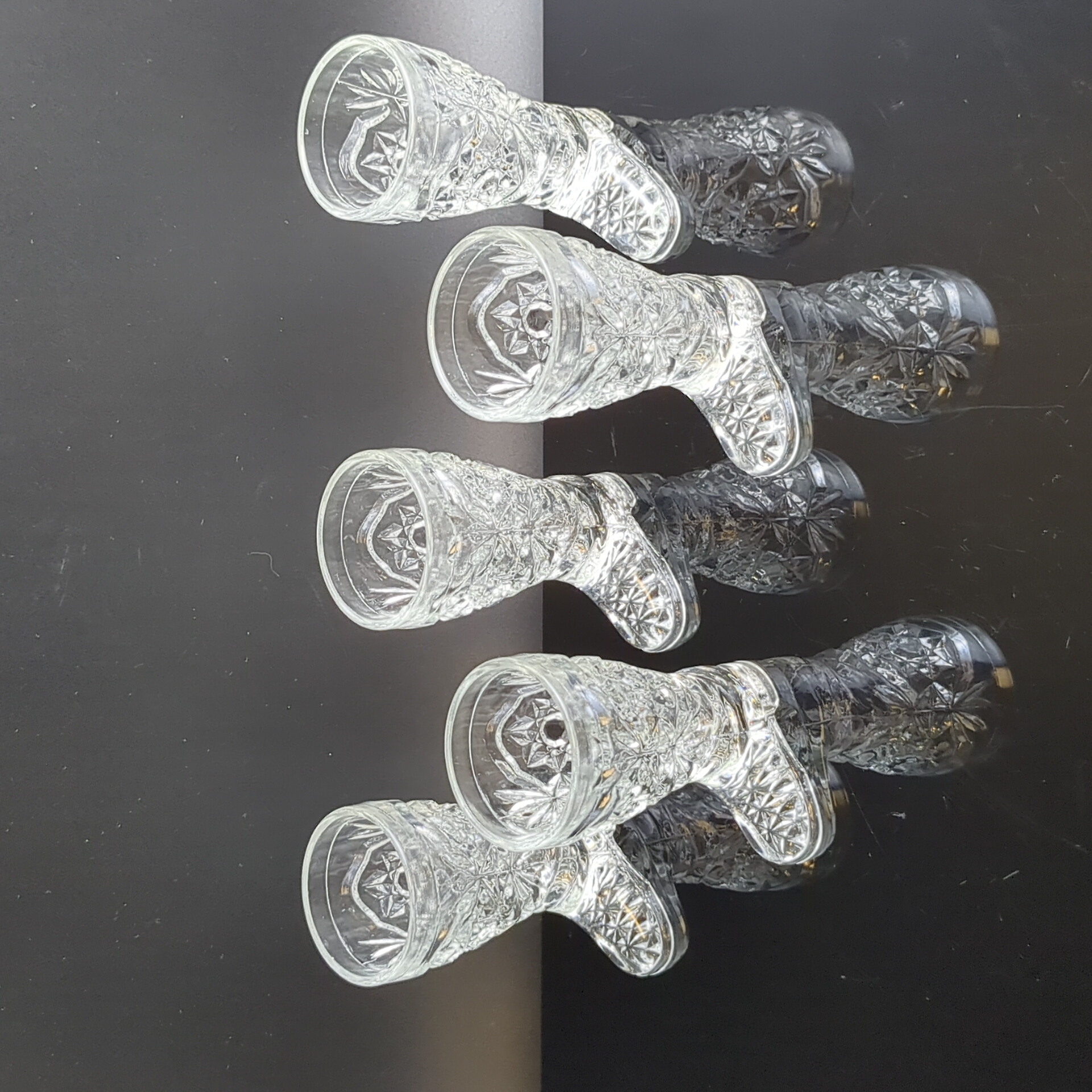 Откройте для себя очарование ушедшей эпохи с набором советских стеклянных стопок в виде сапожков — сокровищем винтажного стиля! Высота - 8.3 см. Состояние и комплектация на фото.