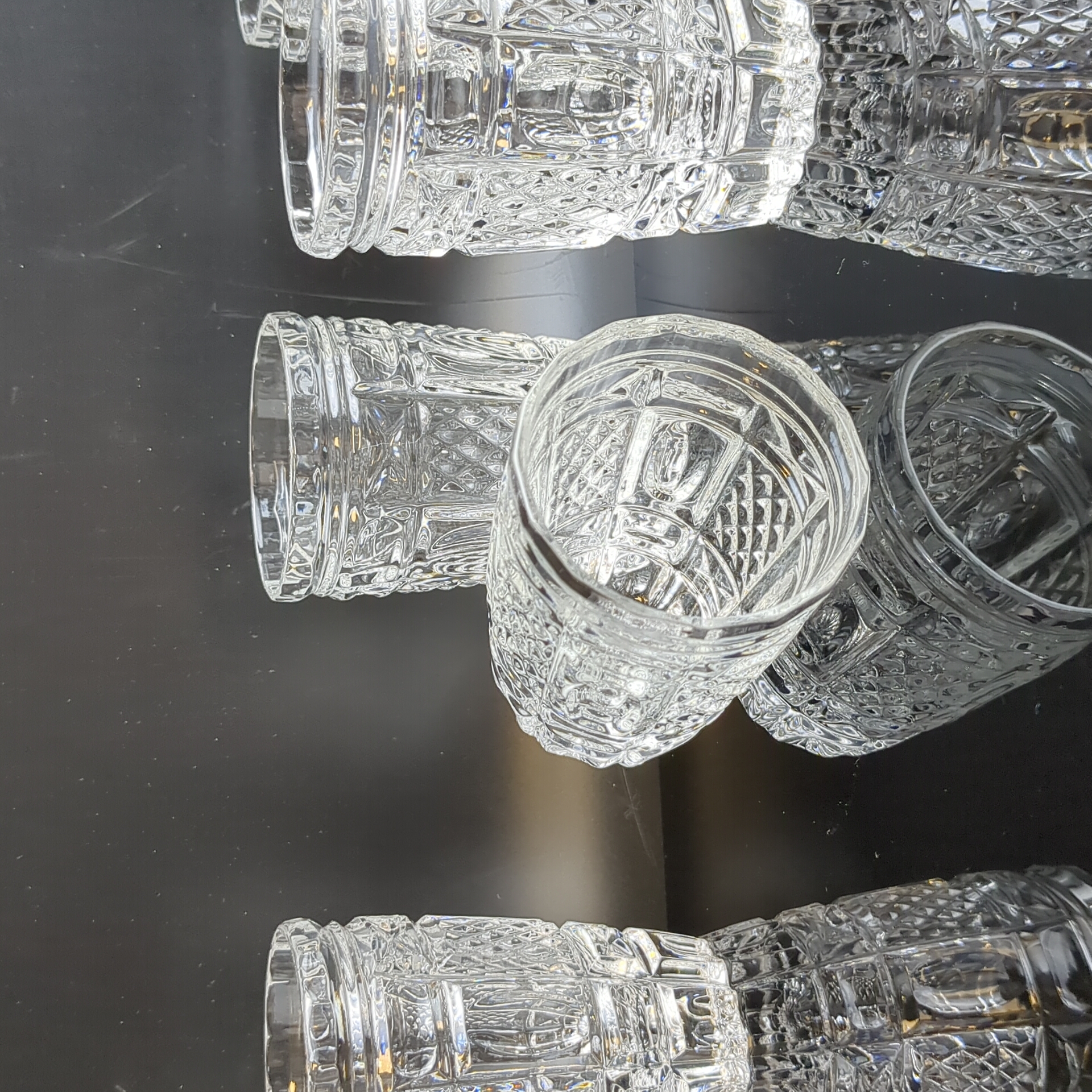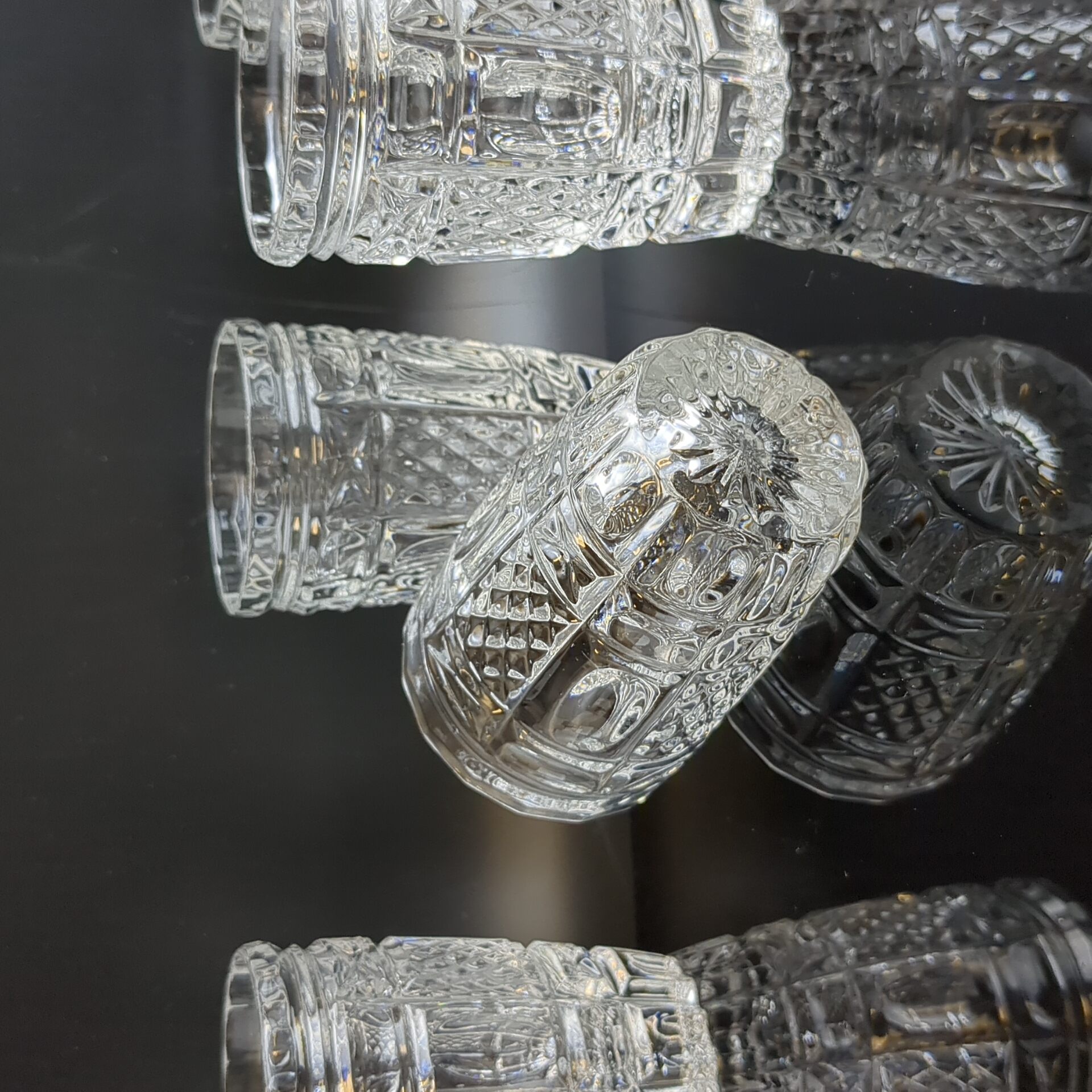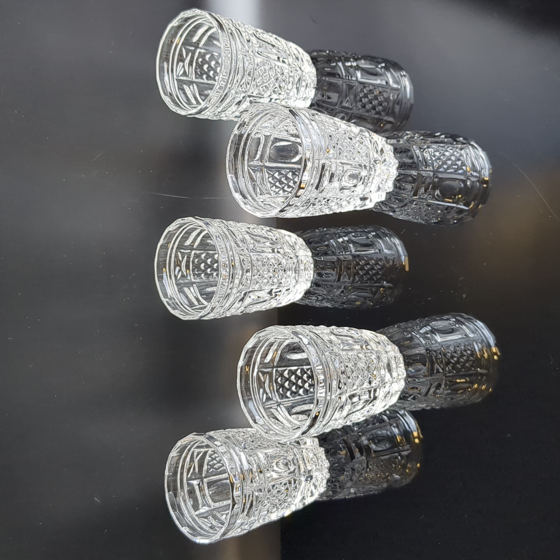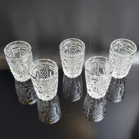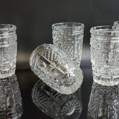 Стопки, стаканы хрустальные алмазная грань, геометрический орнамент, высота- 8.5 см, винтаж СССР 1970-1990 гг. Состояние на фото