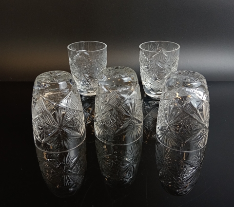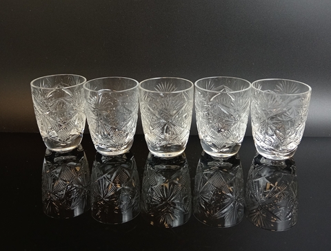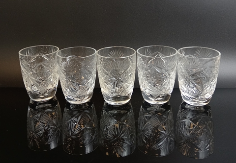 Стопки, стаканы хрустальные набор из 5 штук, алмазная грань, 75 мл. , высота - 6.5 см, винтаж СССР 1970-1990 гг. Присутствуют следы использования- состояние на фото