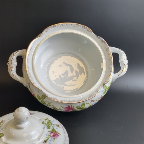 Фарфоровая супница Польша из периода СССР: винтажная роскошь в вашем доме! Высота - 15 см, диаметр верха - 15 см. Состояние на фото.