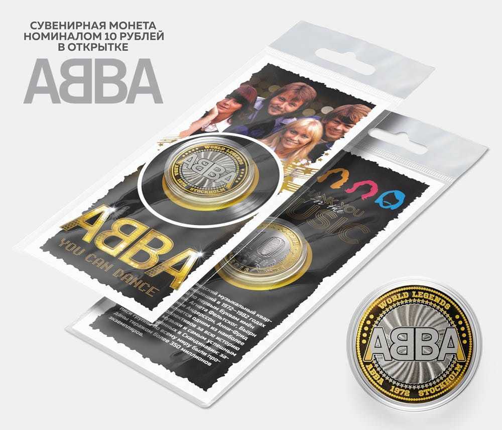 Сувенирная монета 10 рублей "АВВА" в подарочной открытке