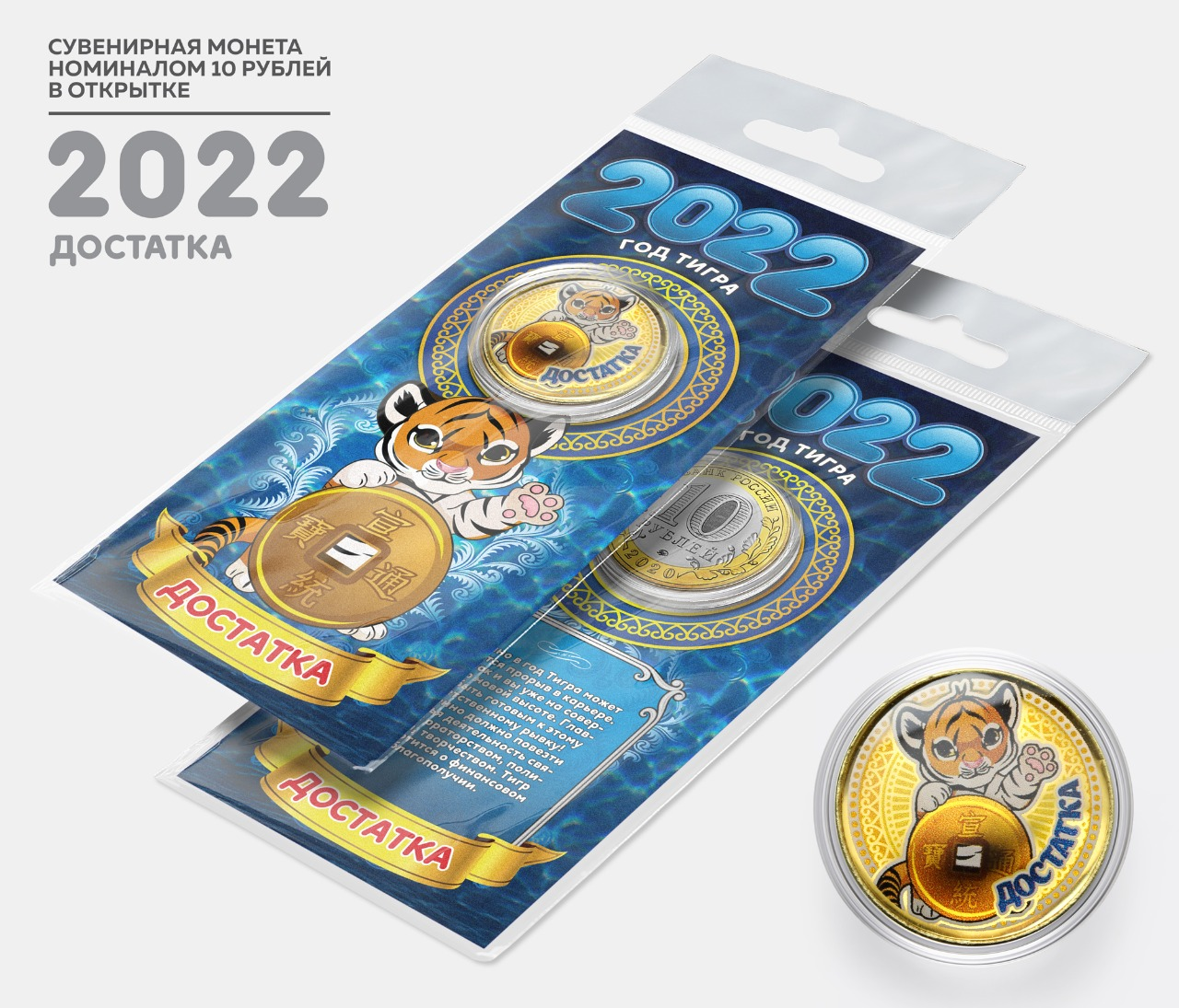 Сувенирная монета 10 рублей. Год Водяного Тигра 2022 - Достатка. В подарочной открытке