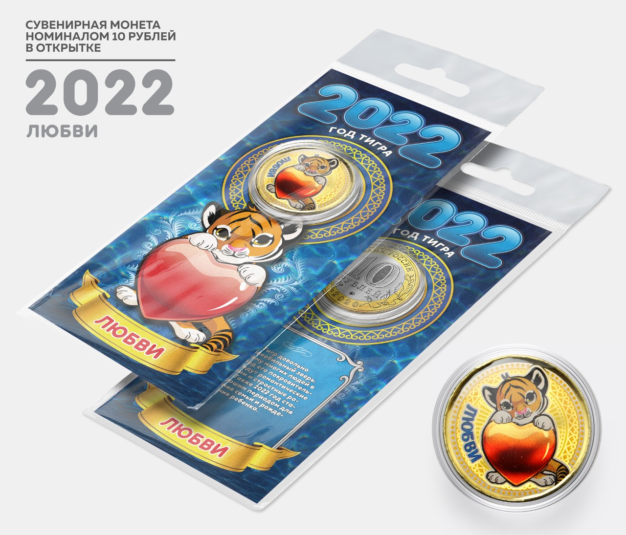 Сувенирная монета 10 рублей. Год Водяного Тигра 2022 - Любви. В подарочной открытке