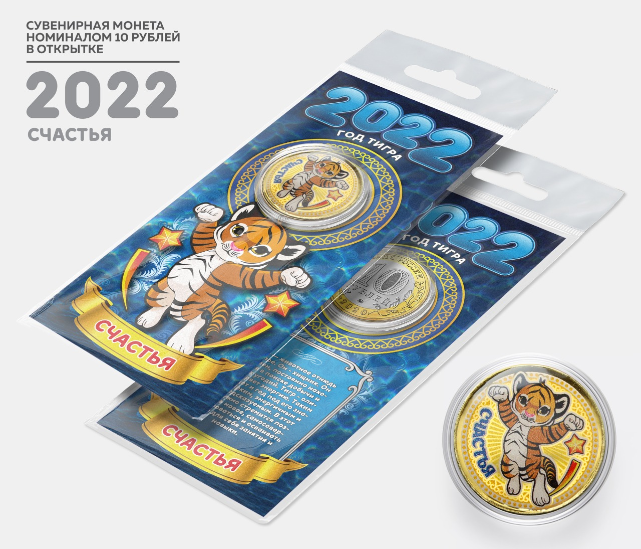 Сувенирная монета 10 рублей. Год Водяного Тигра 2022 - Счастья. В подарочной открытке