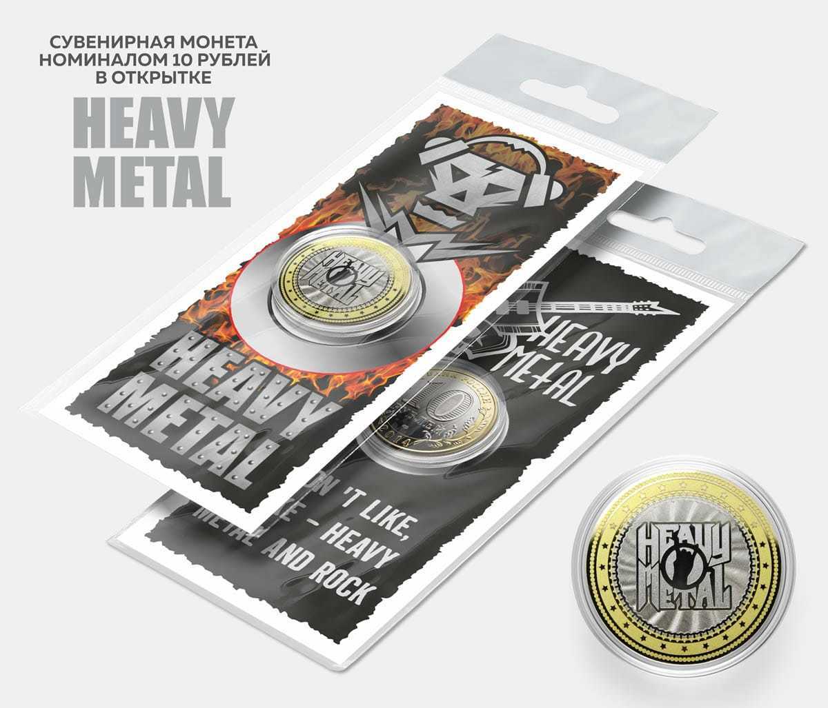 Сувенирная монета 10 рублей "Heavy Metal" в подарочной открытке