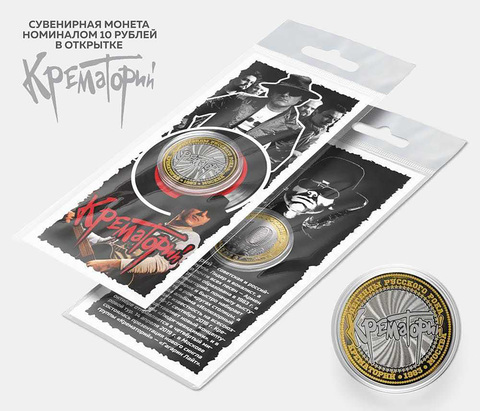 Сувенирная монета 10 рублей "Крематорий" в подарочной открытке