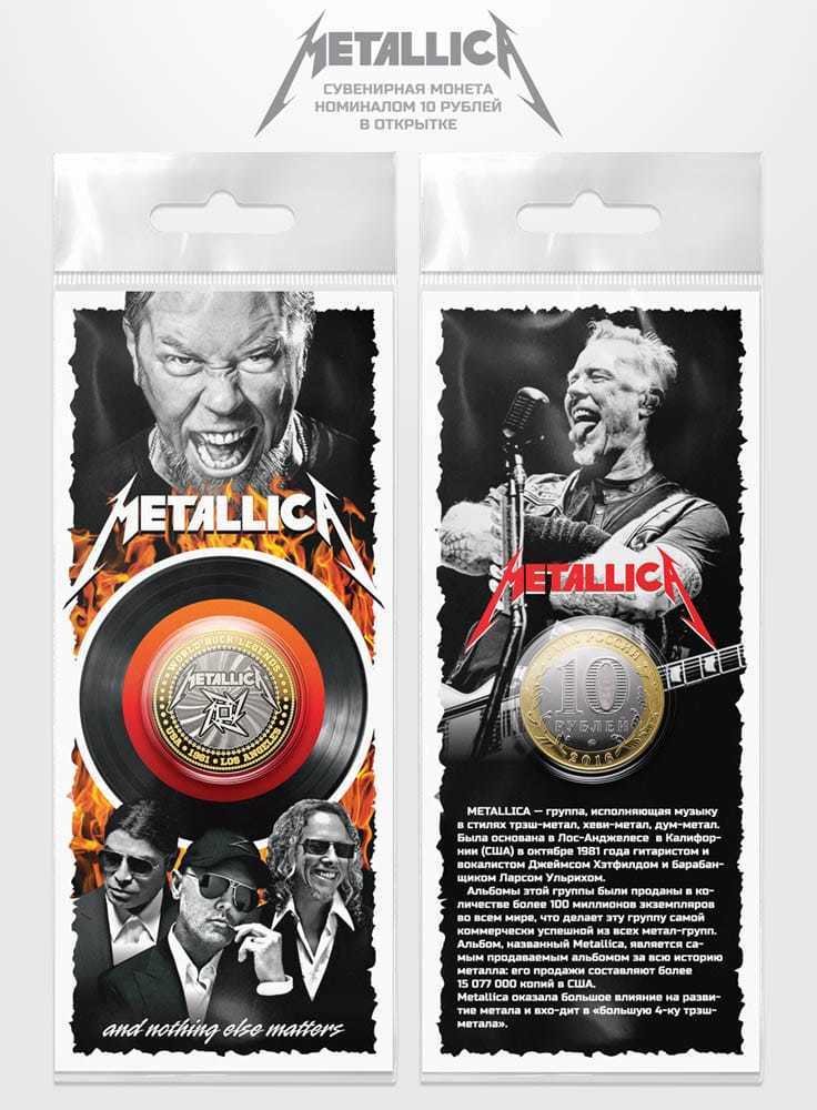 Сувенирная монета 10 рублей "Metallica" в подарочной открытке