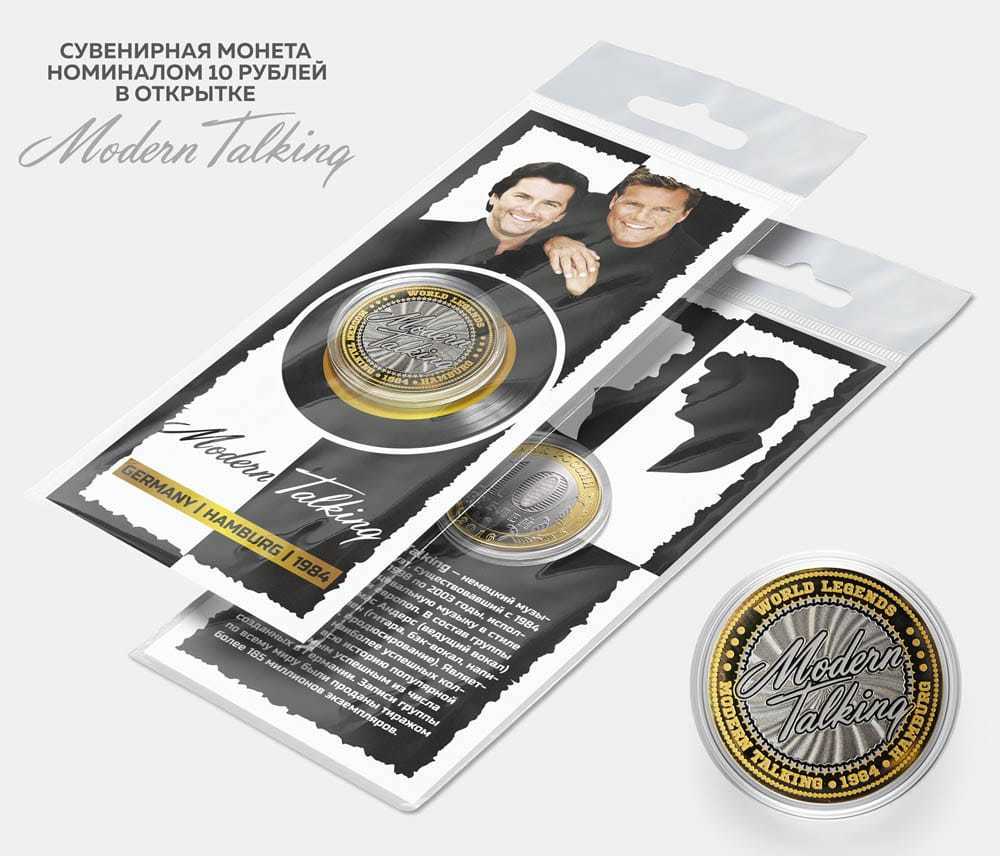 Сувенирная монета 10 рублей "Modern Talking" в подарочной открытке