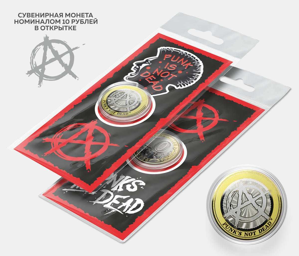 Сувенирная монета 10 рублей "Punks Not dead" в подарочной открытке