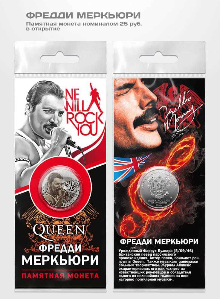 Сувенирная монета 25 рублей "Фредди Меркьюри" в подарочной открытке