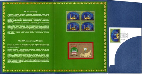 Сувенирный набор в художественной обложке «200 лет Грозному». Квартблок, почтовый блок, конверт первого дня со спецгашением. Буклет