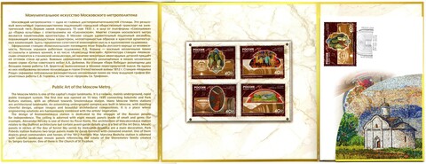 Сувенирный набор в художественной обложке «Монументальное искусство Московского метрополитена». Почтовый блок, 4 конверт первого дня с гашением. Буклет