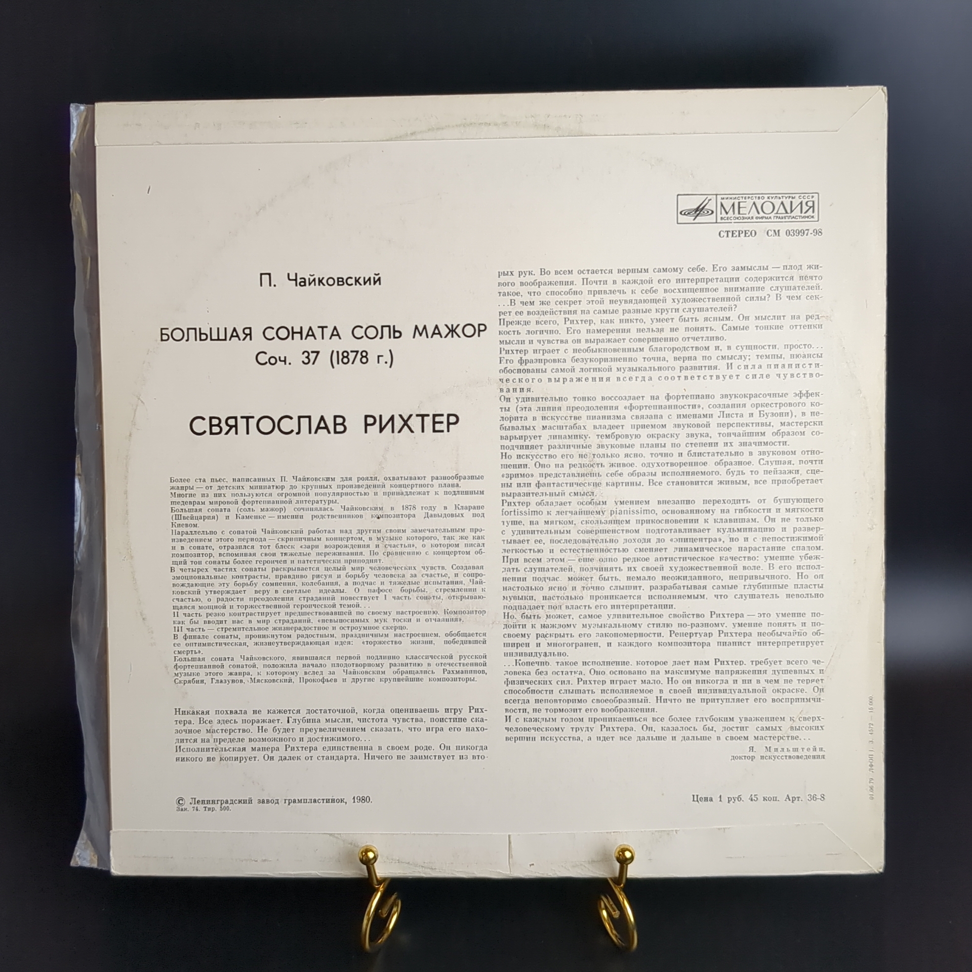 Святослав Рихтер виниловая пластинка 12 дюймов Большая соната, соль мажор, соч.37, П.Чайковский, LP классика, винтаж СССР Мелодия 1980 год. Классическая музыка на виниле. Конверт: EX Диск: EX+