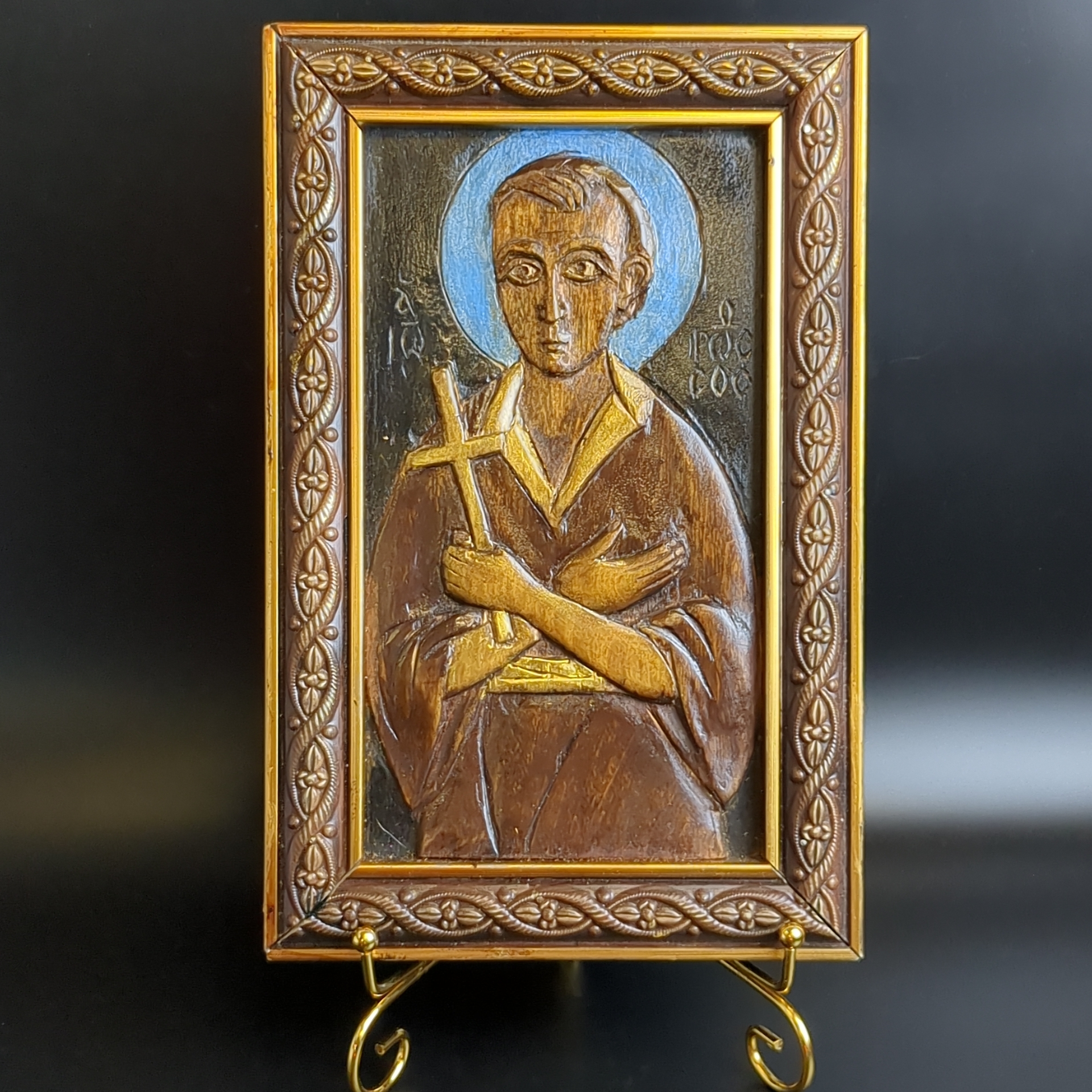 Святой праведный Иоанн Русский. Старинная деревянная резная икона . Данная икона может нести не только духовную ценность, но и благодаря достойному размеру иконы 28х18х2,5 см. идеально впишется в любой современный интерьер. Резьба по дереву выполнена вручную в 1980-е гг. СССР. Ручная работа. Автор данной работы Салангин Николай Васильвич - художник - иконописец Вятского края, мастер своего дела. Его работы так же находятся в некоторых храмах. Доска бука подобрана таким образом, чтобы кольца располагались в разные стороны, чтобы доска не изгибалась со временем. Резная икона из дерева изготовленна по православным канонам. Святой мученик Иоанн Русский помогает в обретении украденных или потерянных вещей, за людей в местах лишения свободы, за несправедливо обиженных, а также за защиту Отечества. Он также помогает в духовных и телесных недугах. К нему обращаются за помощью в возвращении долгов и за примирение враждующих.