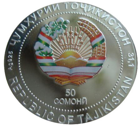 Таджикистан 50 сомони 2014 Слалом Лыжи Олимпиада Сочи 2014 СЕРЕБРО