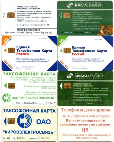 Таксофонная карта. Набор 8 шт. ВолгаТелеком