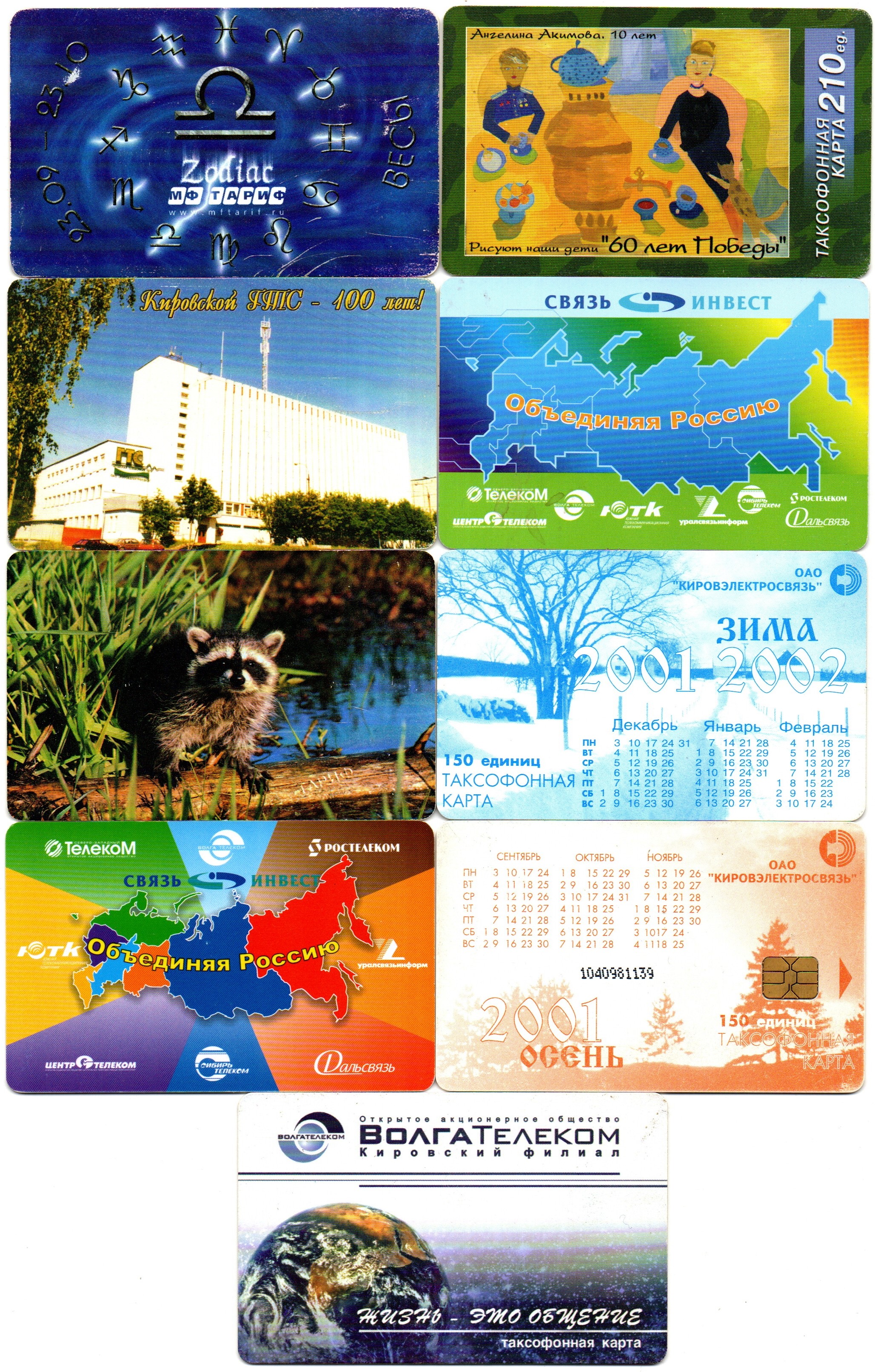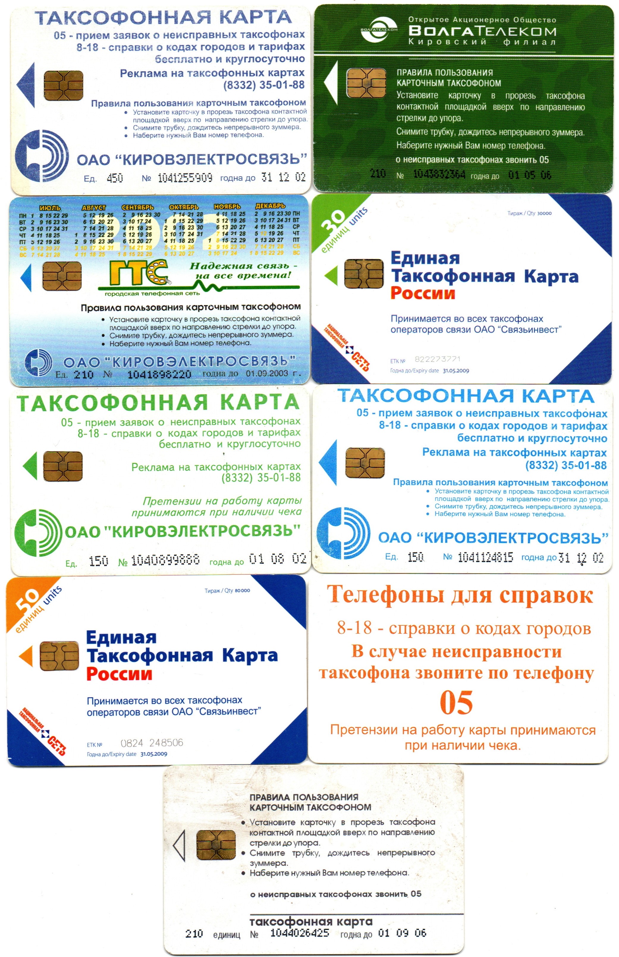 Таксофонная карта. Набор 9 шт. ВолгаТелеком