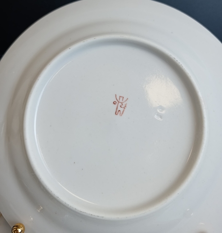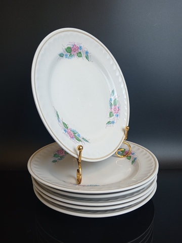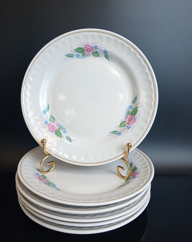 Тарелки десертные набор из 6 штук, диаметр - 17.5 см, роспись цветы, рельеф, Прокопьевский ФЗ, винтаж времён СССР.